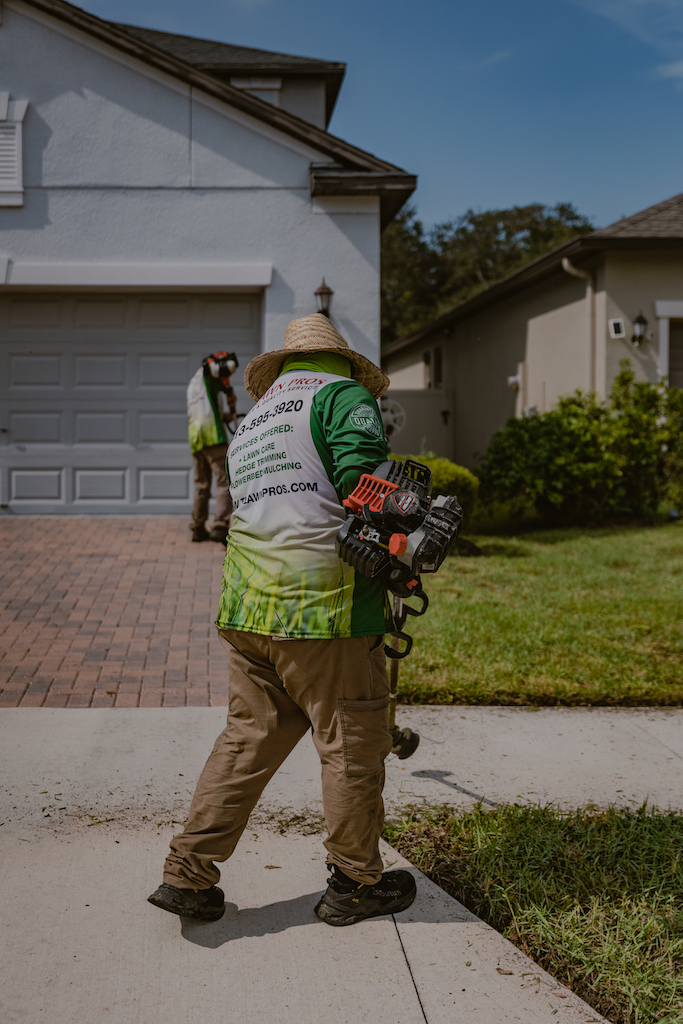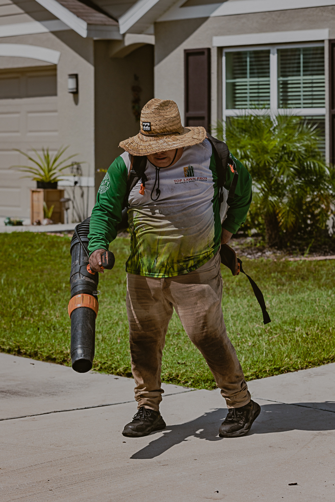 Inevitably, as we mow, some clippings will fall on the concrete surfaces. Rest assured, that is not our final product, and we will blow those clippings on every visit before we are finished. We never blow those clippings to the road or to the neighbors property. These clippings will always get blown back onto your lawn to ensure your property and neighborhood stays looking great, as well as the road leading up to your home. With Top Lawn Pros, you will receive reliable and timely service with great quality results, from the best professionals in the lawn services Riverview Fl.