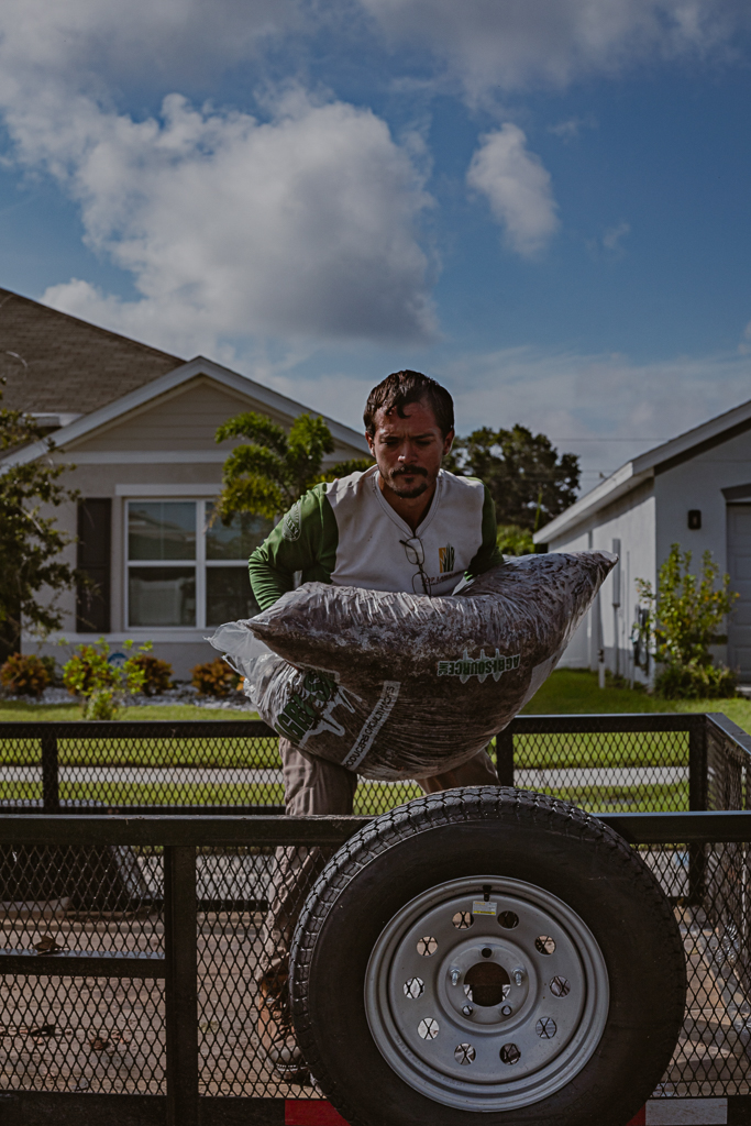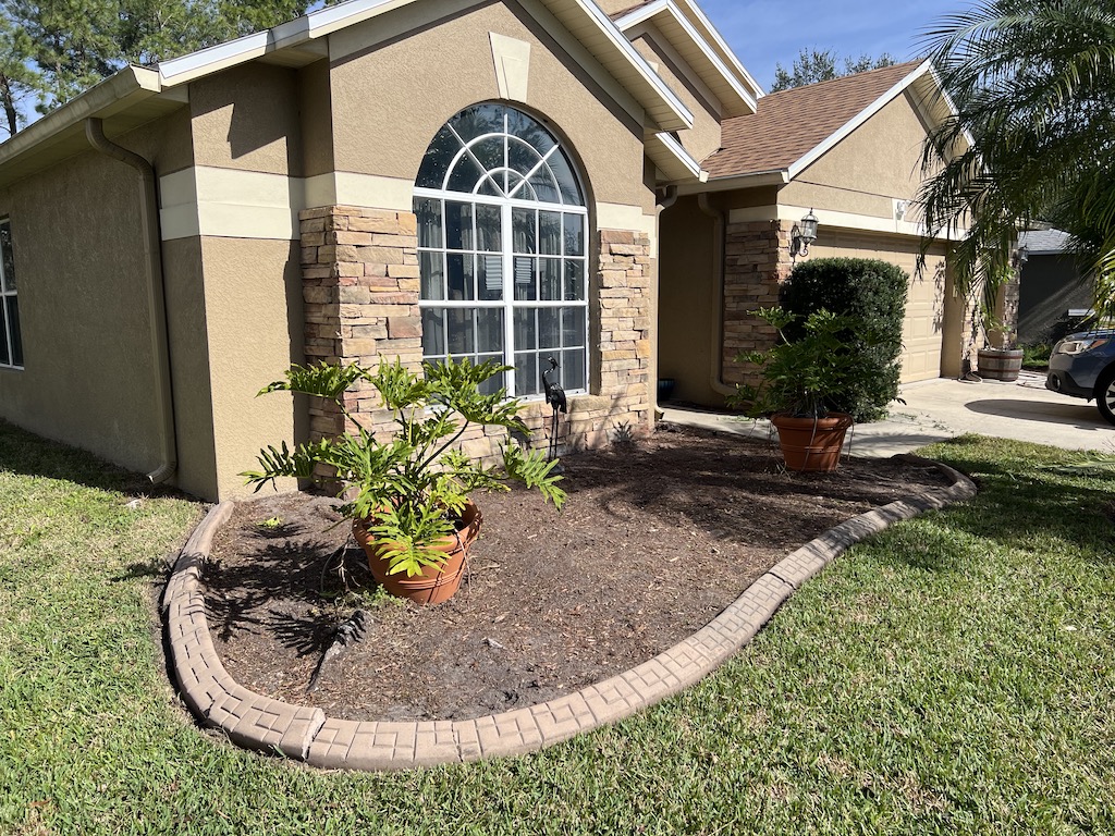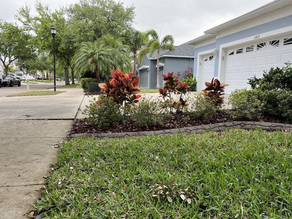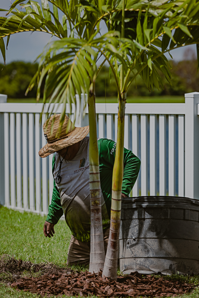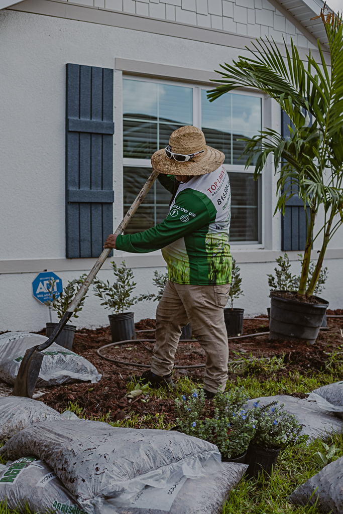 Flowerbeds, also known as landscape beds, with natural borders will be edged with a blade edger to keep the grass from growing into areas where it should not be growing. The mulch in the flowerbeds should be freshened up at least once per year, preferably every six months. The easiest and most convenient way to purchase the mulch is by the bag. Typically big box stores sell the mulch in 2 cubic foot bags. To determine how much mulch you need, you must first determine if you are adding a layer of mulch to an existing bed with mulch or are you adding mulch to a new flower bed. To keep weeds from excessively growing on your flower beds, it is recommended to keep at least 5 inches of mulch from the soil to the top layer of the mulch. To calculate how many bags of mulch you need, multiply the length of the flowerbed in feet by the width of the flowerbed in feet, times the depth of the mulch you intend to add in feet. Cubic feet are determined using the following formula length (ft) x Width (ft) x height (ft). Let’s say you have a bed that is 25 feet long by 10 feet wide and you want to add 1 inch of mulch on top of the existing mulch. First convert the height of mulch to be added into feet. 1 inch divided by 12 inches in a foot is 0.08 feet. Your height is 0.08 feet. We will multiply 25 ft by 10 ft by 0.08 ft which gives us 20.8 cubic feet, we will round up to 21 cubic feet for simplicity. If each bag of mulch is 2 cubic feet, then we need to purchase 10 ½ bags or 11 bags of 2 cubic foot mulch bags. If you want to create a new flower bed with the same dimensions, you will need 5 inches of mulch, multiplying your number of bags by 5. You would then need 55 bags of mulch for a new flower bed that is 25 feet long by 10 feet wide. At this point, you might be thinking that’s a lot of bags of mulch, I do not want to be carrying these around my property, no worries you can call Top Lawn Pros at 813-595-3920 we provide the best lawn services Riverview Fl has to offer. We can help you with your mulch needs, as well as with lawn care, shrub trimming, palm tree trimming, re-sodding, leaf clean ups and property clean ups.